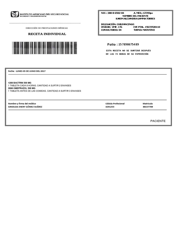 NOMBRE DEL PACIENTE