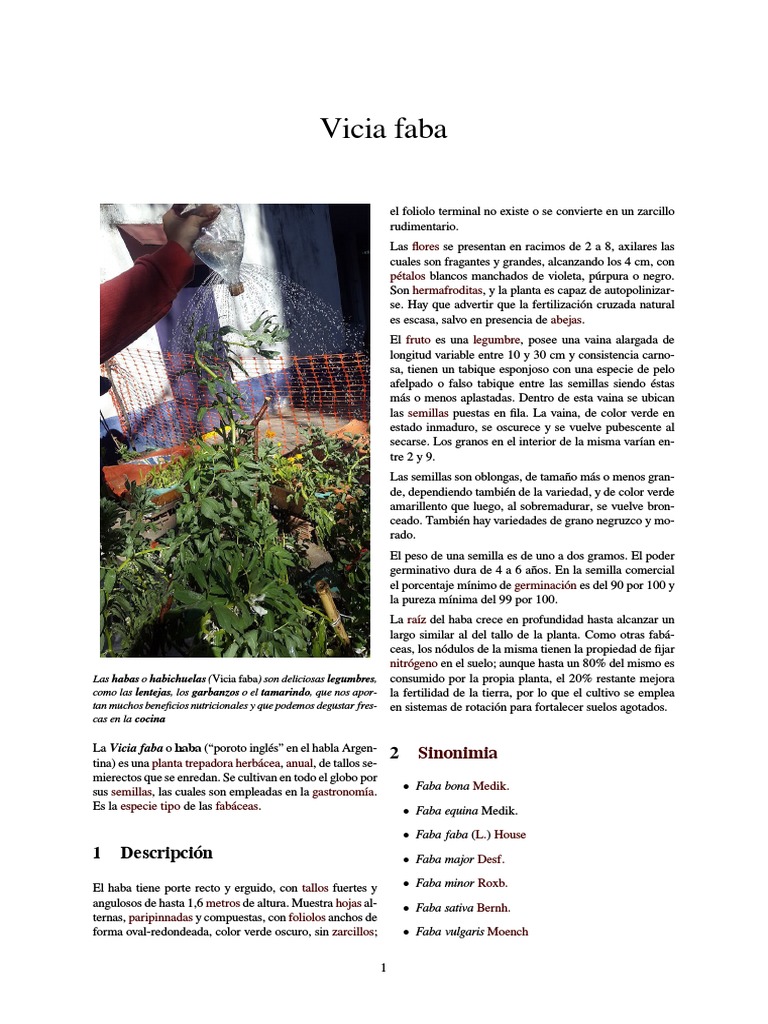 La Vicia faba o haba (poroto ingls en el habla Argen- 2 Sinonimia