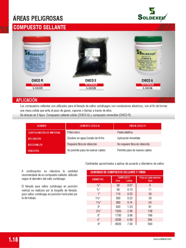 Se ofrecen en 2 tipos: Compuesto sellante slido (CHICO A) y compuesto removible (CHICO R).
