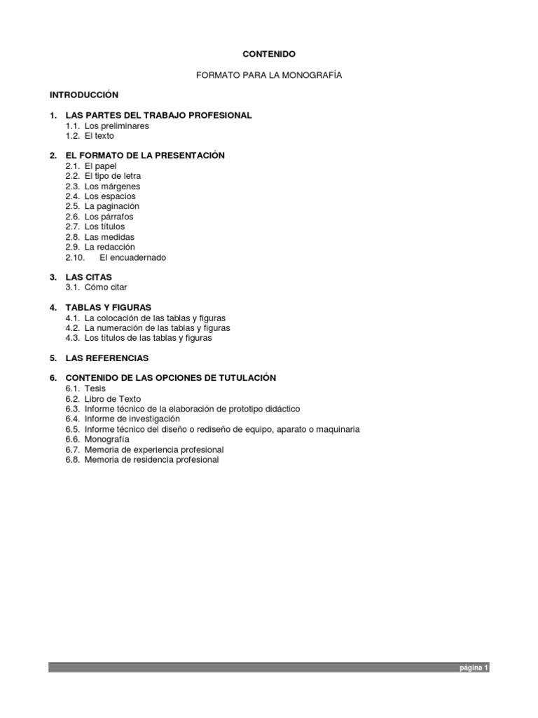 Todos deben tener un título que debe colocarse en el índice del documento. La paginación se continúa