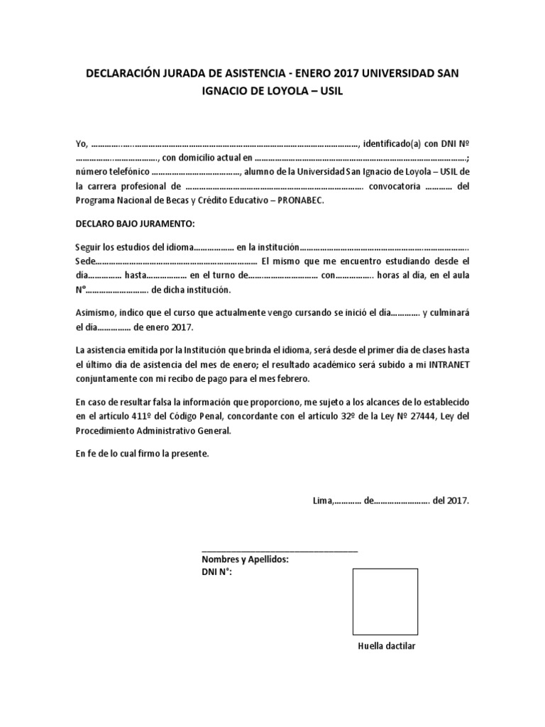 DECLARACIN JURADA DE ASISTENCIA - ENERO 2017 UNIVERSIDAD SAN
