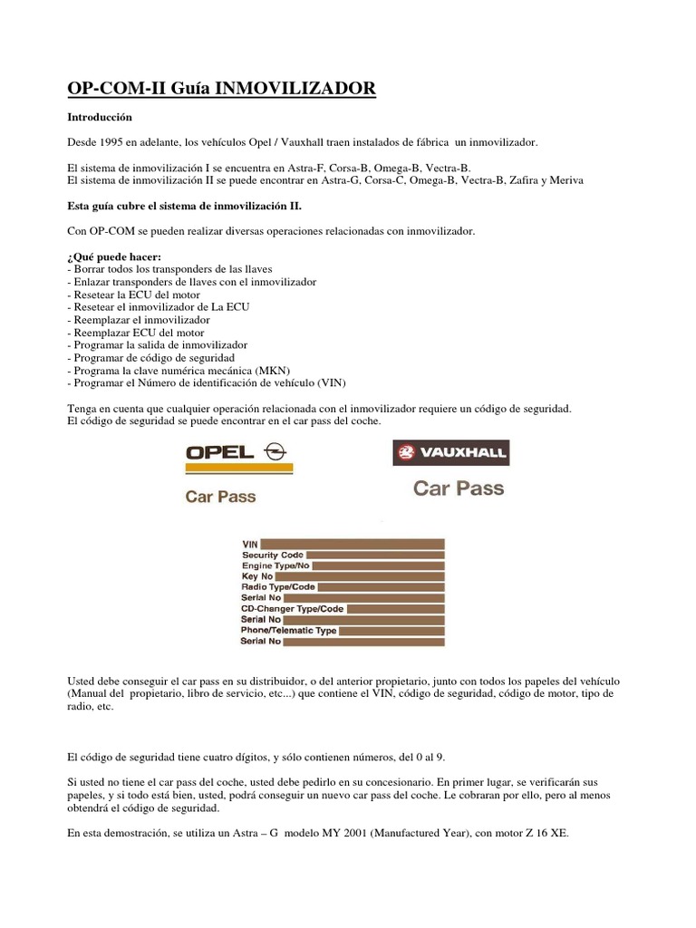 En esta gua, hemos querido resumir lo que OP-COM puede hacer con el inmovilizador.