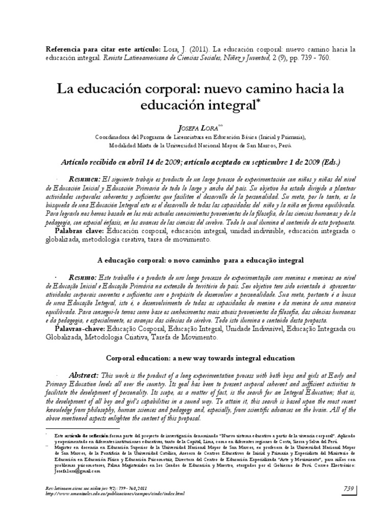 Palabras clave: Educacin corporal, educacin integral, unidad indivisible, educacin integrada o