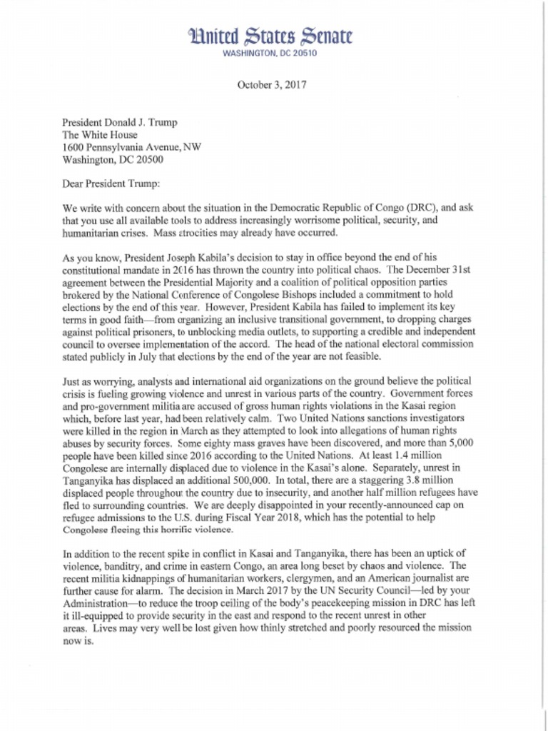 10.03.17 Ltr to POTUS Trump Re DRC Policy