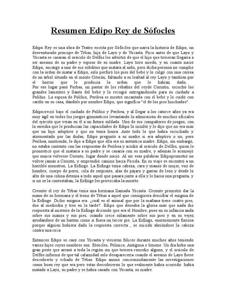 Resumen Edipo Rey de Sfocles