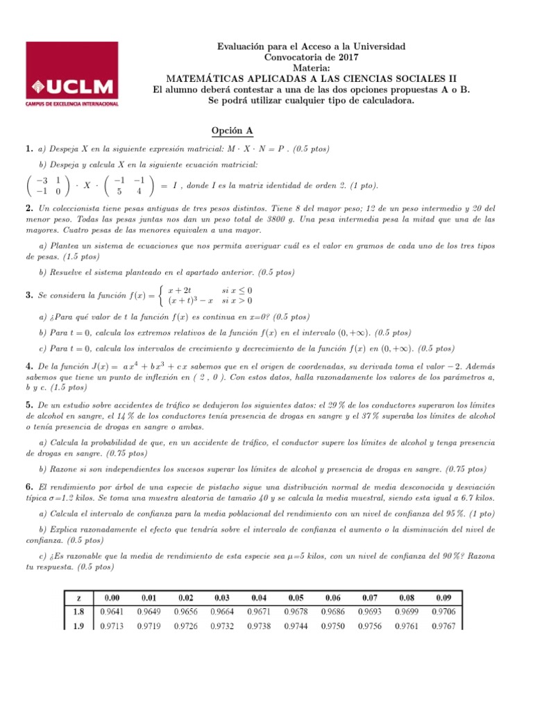 El alumno debera contestar a una de las dos opciones propuestas A o B.