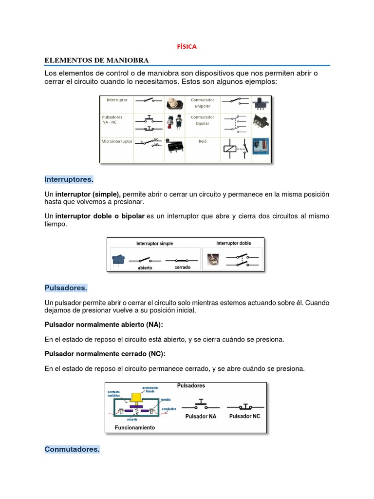 Los elementos de control o de maniobra son dispositivos que nos permiten abrir o