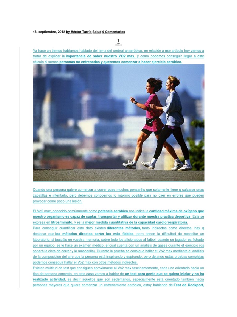 tendr vital importancia para establecer el porcentaje de Vo2 max al que debe ir en cada ejercicio, lo cual se
