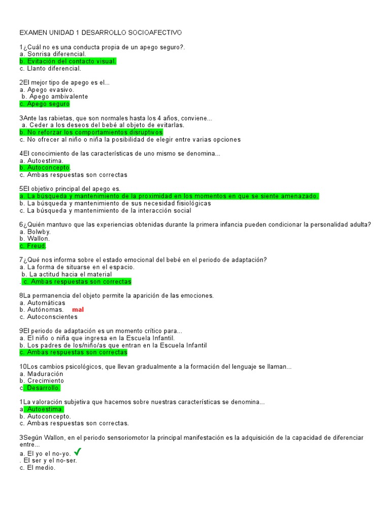 EXAMEN UNIDAD 1 DESARROLLO SOCIOAFECTIVO