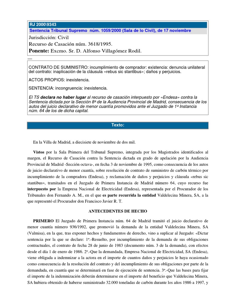 incumplimiento de la compradora (Endesa), y reclamacin de daos y perjuicios y clusula rebus sic