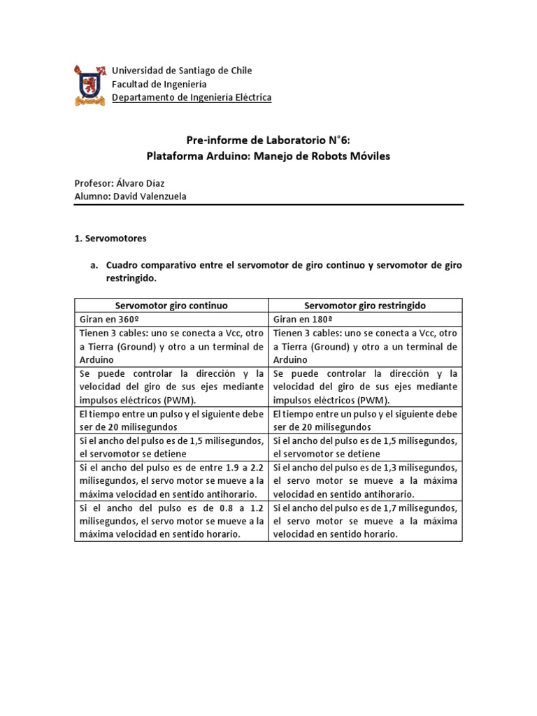 a. Cuadro comparativo entre el servomotor de giro continuo y servomotor de giro