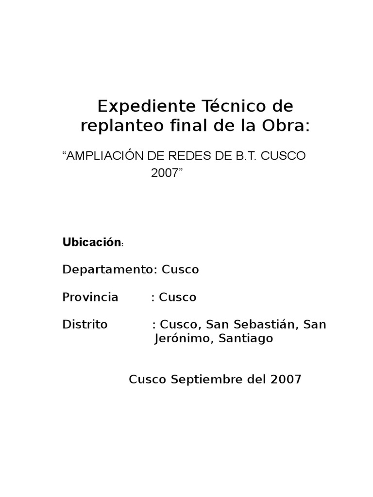 Expediente Técnico AMPLIACIÓN. Redes BT CUSCO 2007