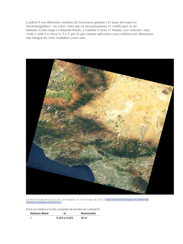 Echa un vistazo a la lista completa de bandas de Landsat 8: