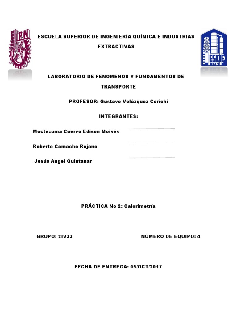 PRCTICA No 2: Calorimetra