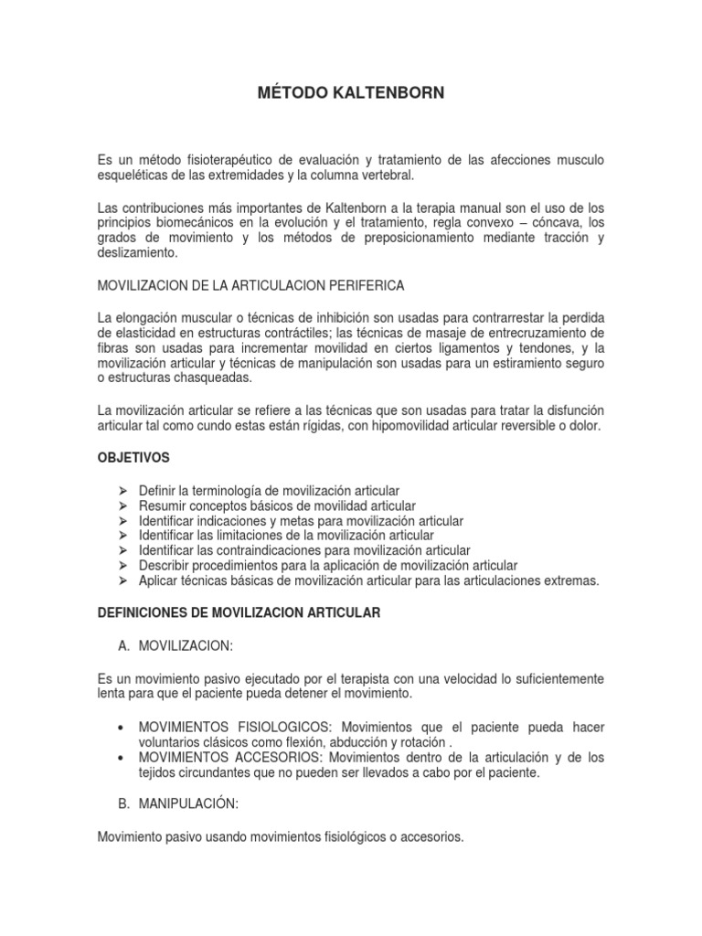 Las contribuciones ms importantes de Kaltenborn a la terapia manual son el uso de los