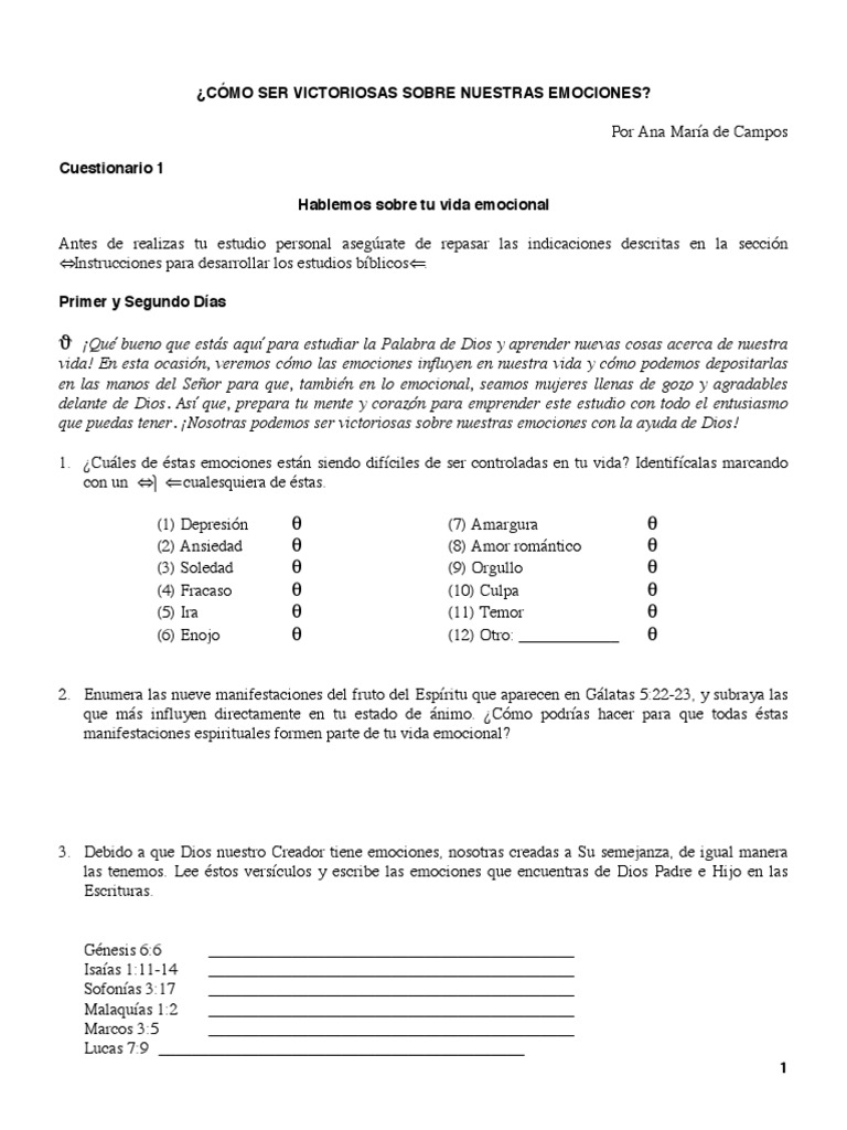 que puedas tener. Nosotras podemos ser victoriosas sobre nuestras emociones con la ayuda de Dios!