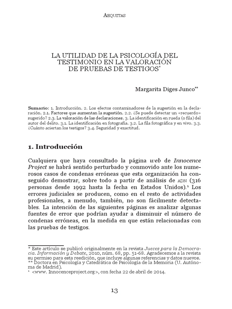 cundo un testigo presencial se equivoca o acierta en la identifica-