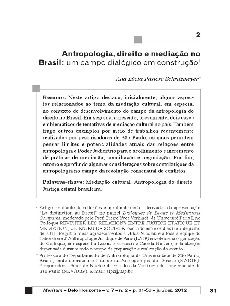 Antropologia, direito e mediao no brasil: um campo dialgico em construo