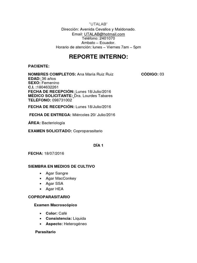 EXAMEN SOLICITADO: Coproparasitario
