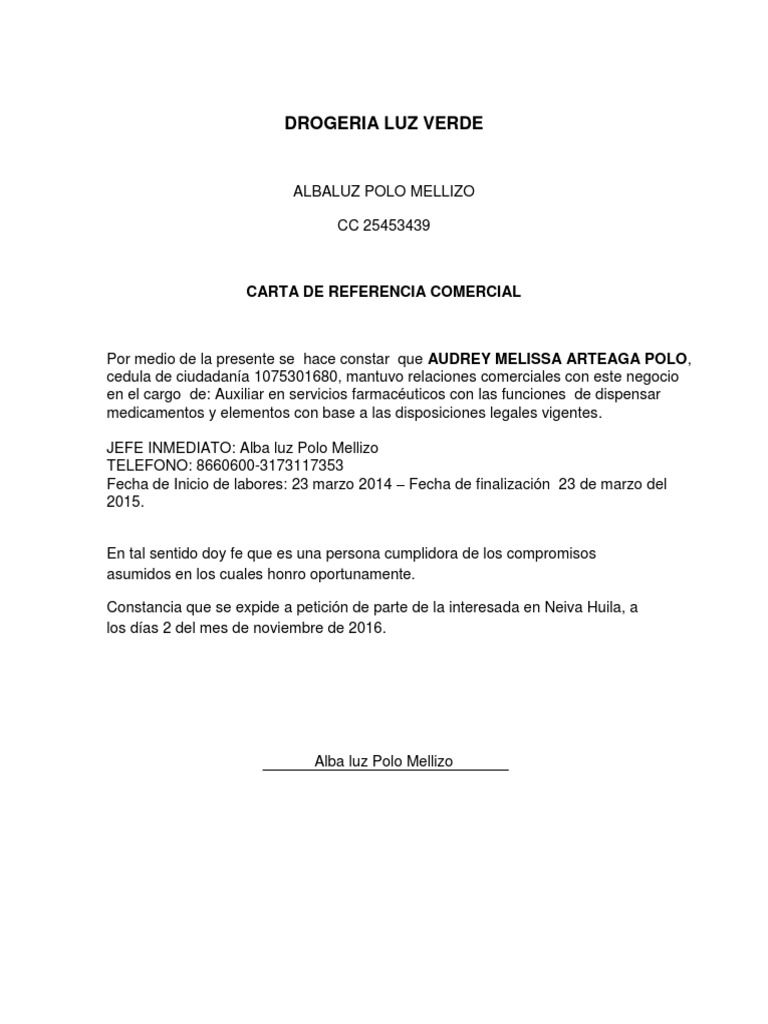 CARTA DE REFERENCIA COMERCIAL