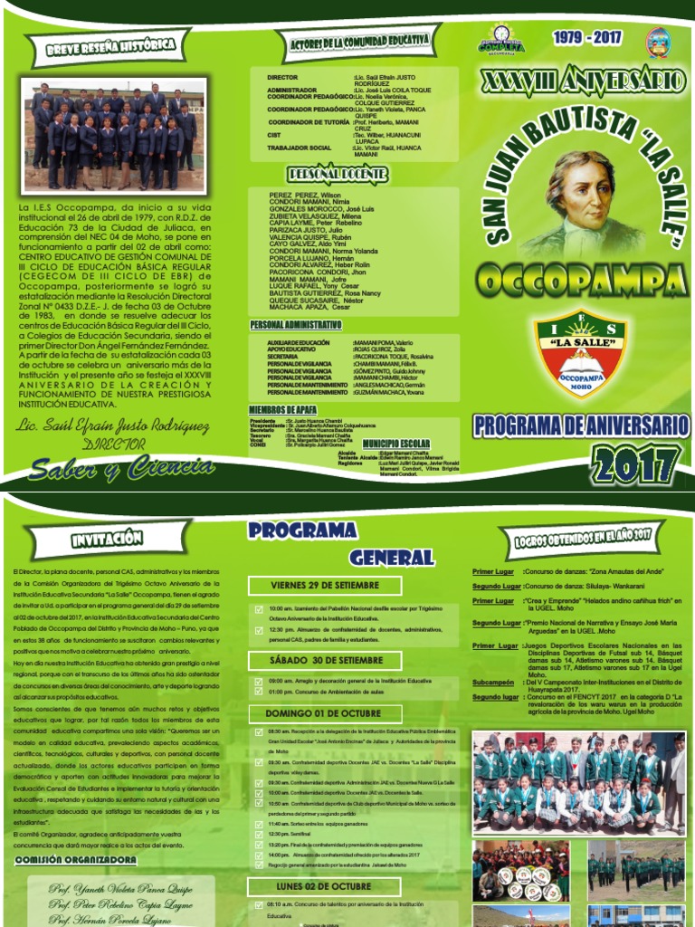 Institucin Educativa Secundaria La Salle Occopampa, tienen el agrado