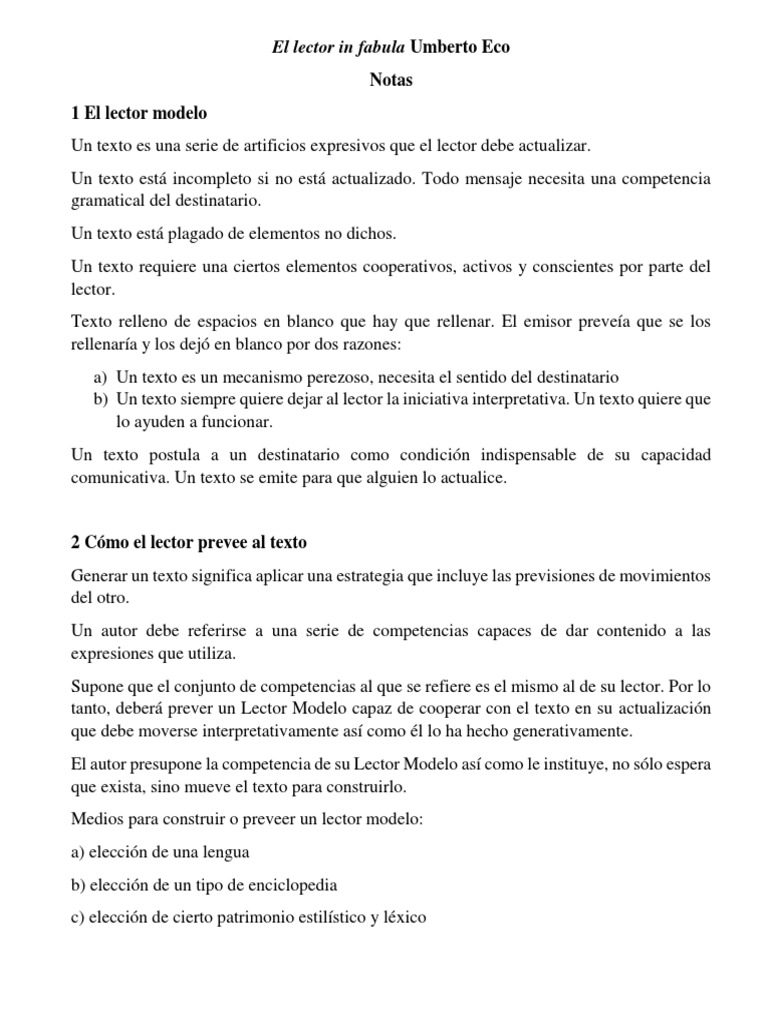El lector in fabula Umberto Eco