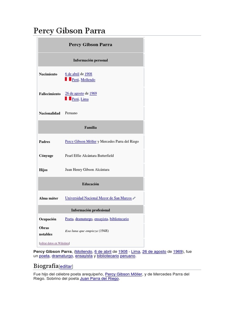 grandes poetas peruanos: su padre, Percy Gibson