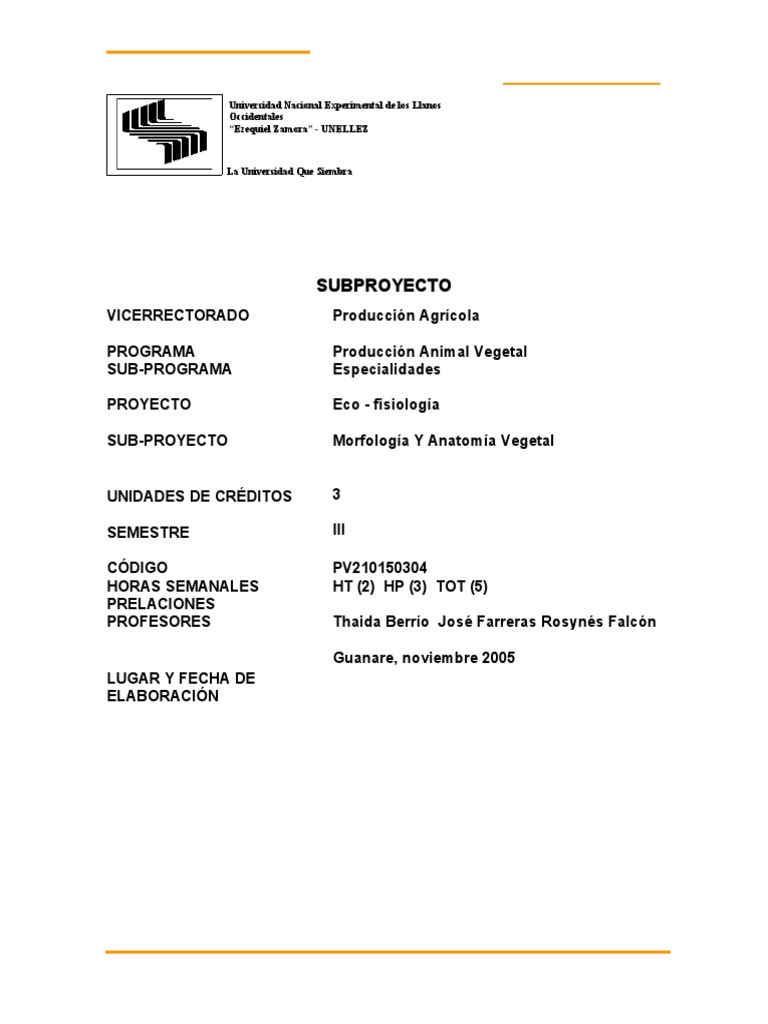 El contenido programtico del subproyecto Morfologa y Anatoma Vegetal
