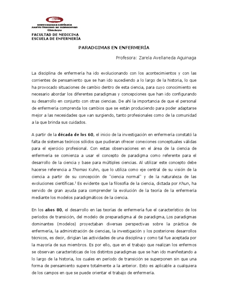 enfermera se comienza a usar el concepto de paradigma como referente para el