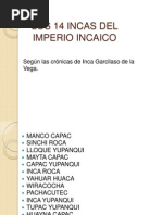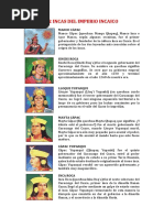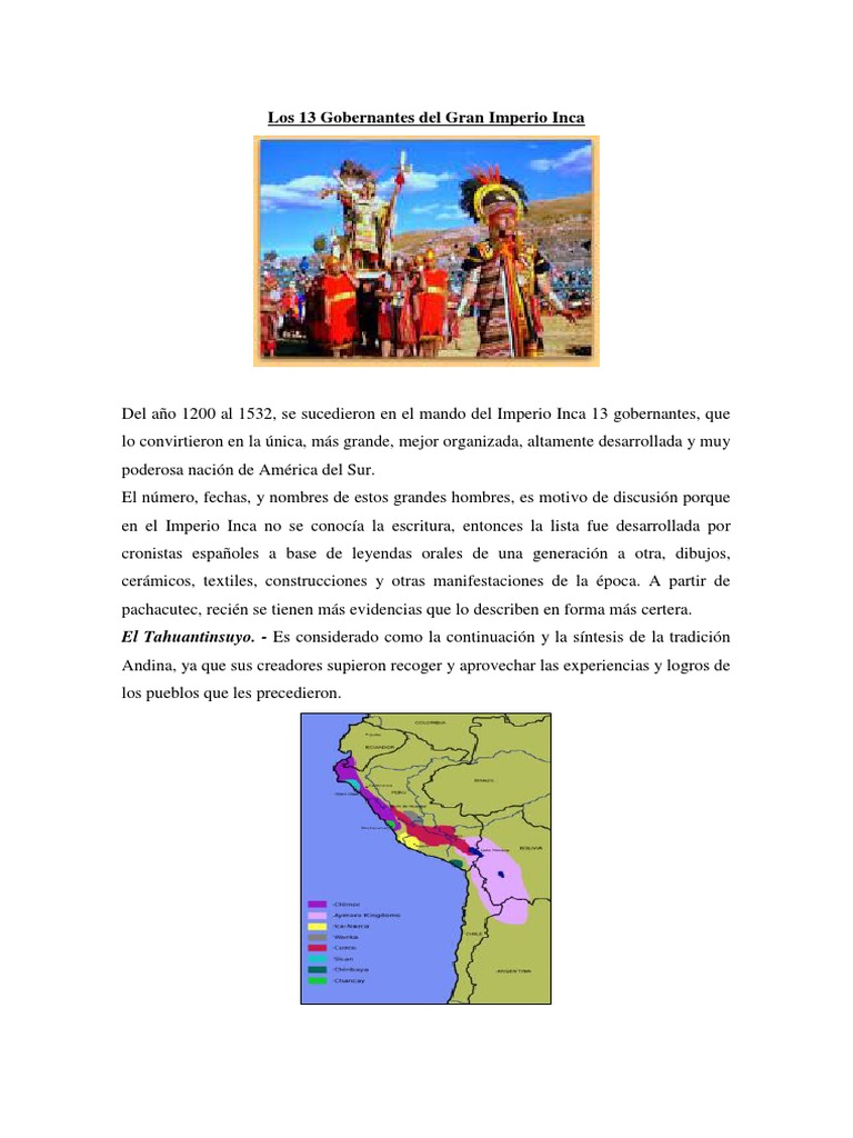 Del ao 1200 al 1532, se sucedieron en el mando del Imperio Inca 13 gobernantes, que