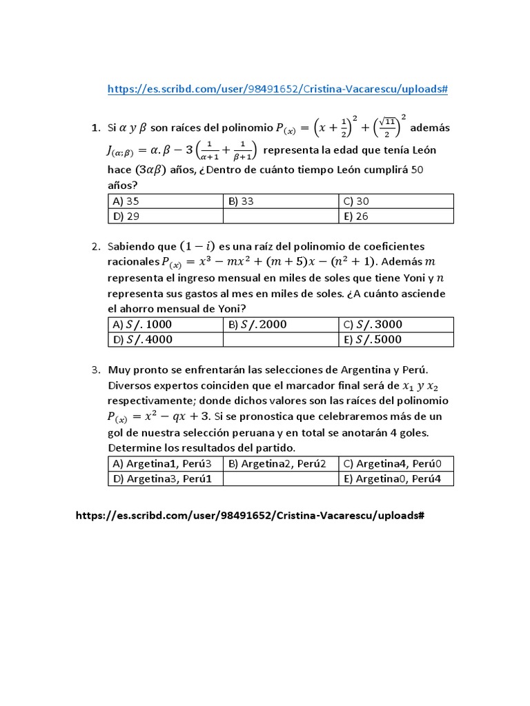 1. Si son races del polinomio () = ( + ) + ( 2 ) adems