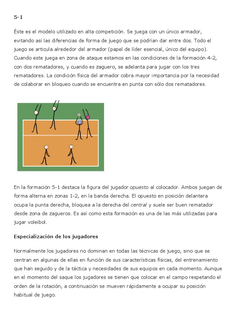 En la formacin 5-1 destaca la figura del jugador opuesto al colocador. Ambos juegan de