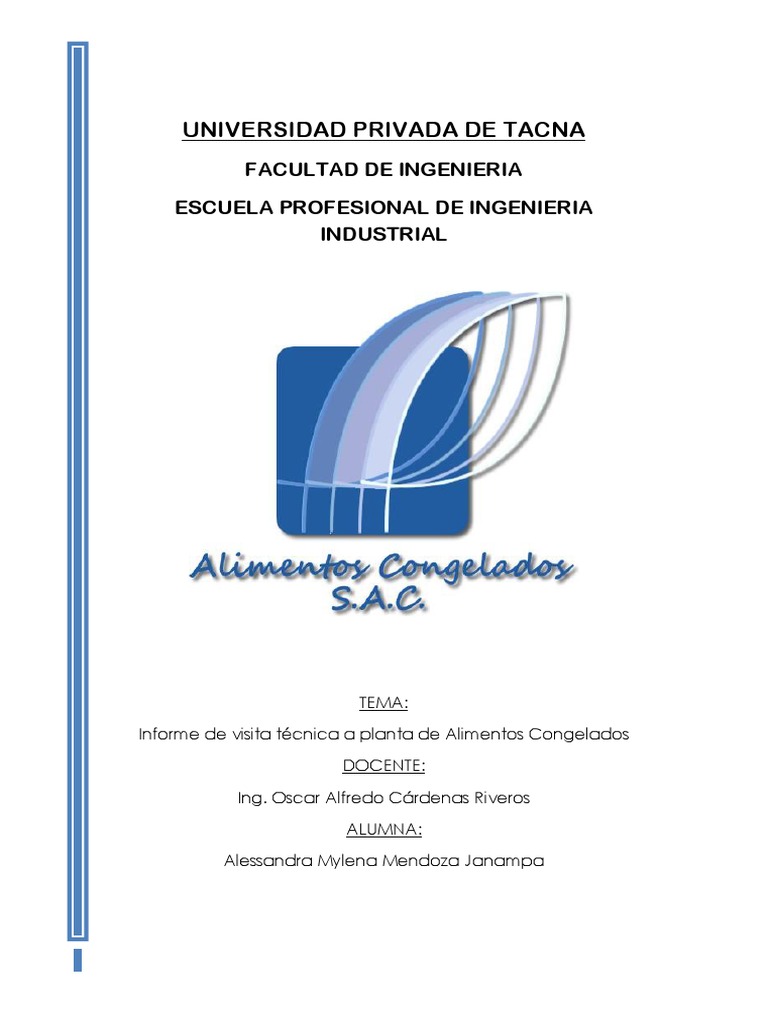 INFORME SOBRE PLANTA DE ALIMENTOS CONGELADOS S.A.C