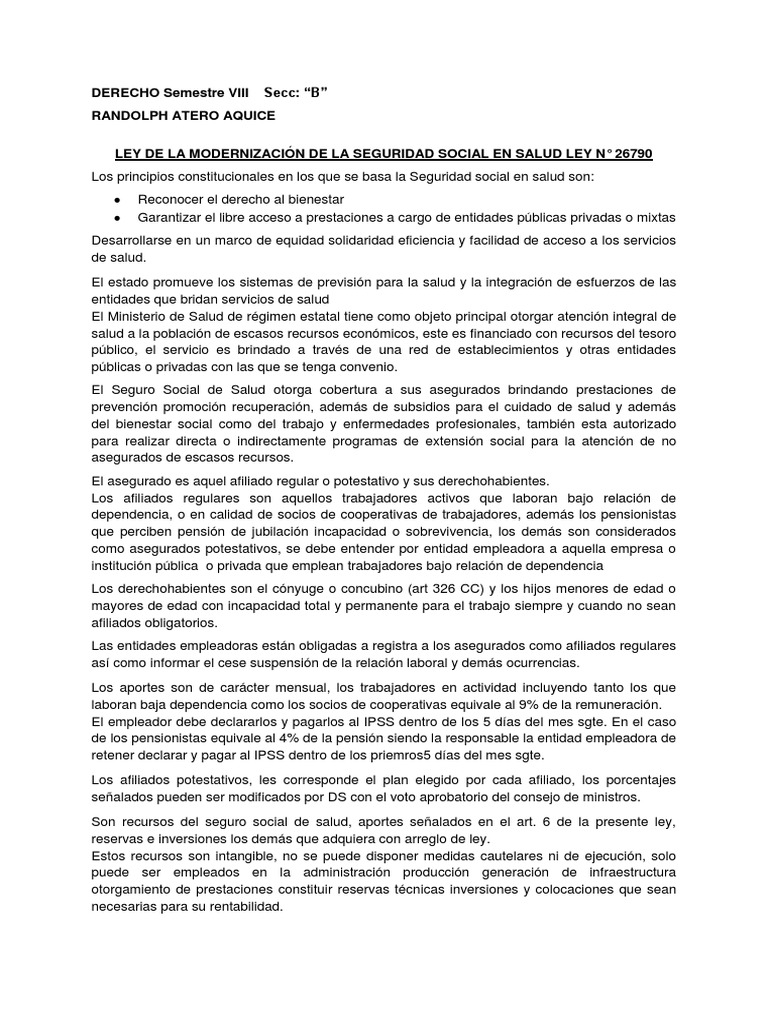LEY DE LA MODERNIZACIN DE LA SEGURIDAD SOCIAL EN SALUD LEY N 26790