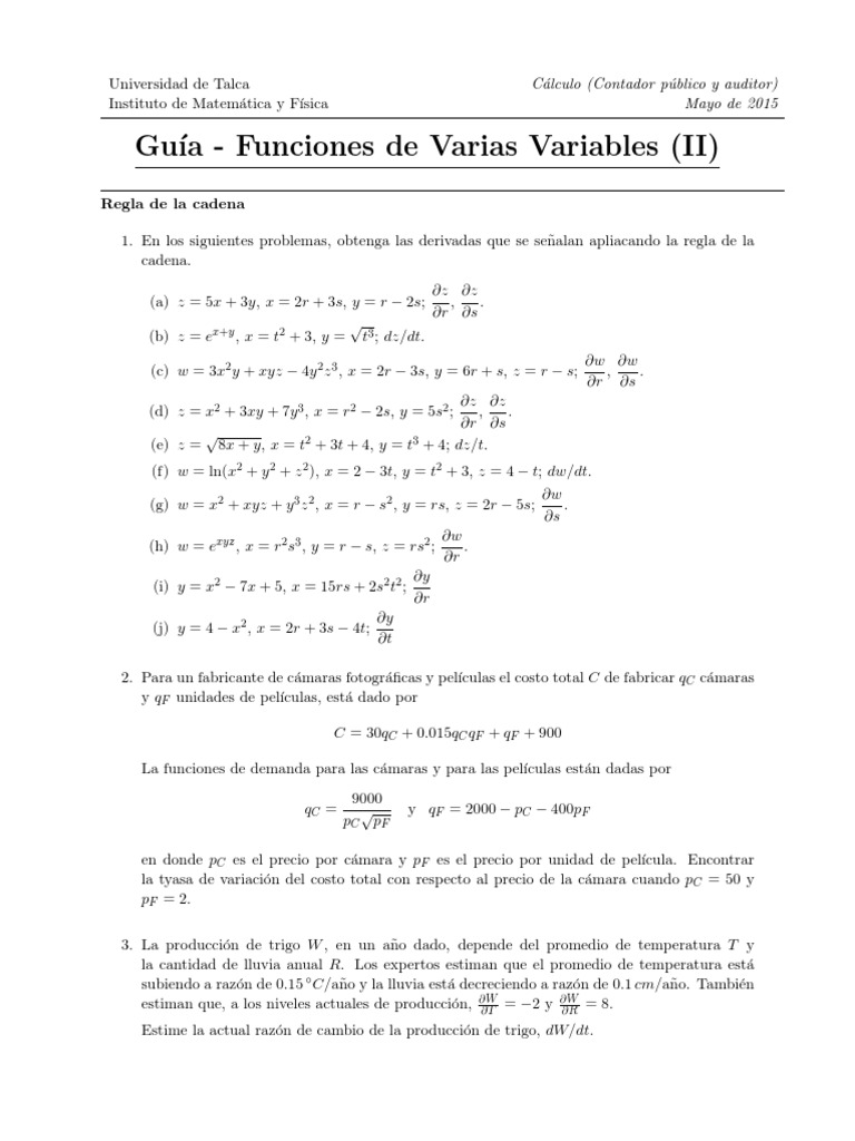 1. En los siguientes problemas, obtenga las derivadas que se senalan apliacando la regla de la