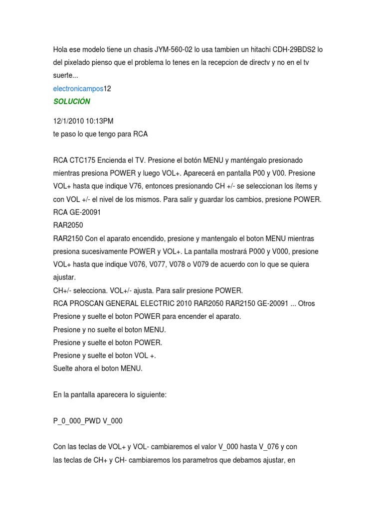 MTODO PARA ENTRAR AL MODO DE SERVICIO RCA/G.E.