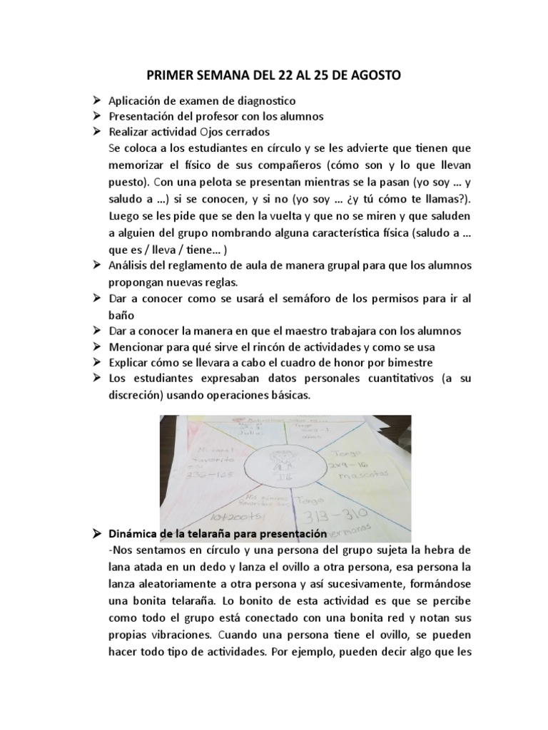 PRIMER SEMANA DEL 22 AL 25 DE AGOSTO