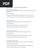 Laurel (triwe) Se ocupan sus hojas, las flores y corteza, desde resfros hasta enfermedades venreas. La