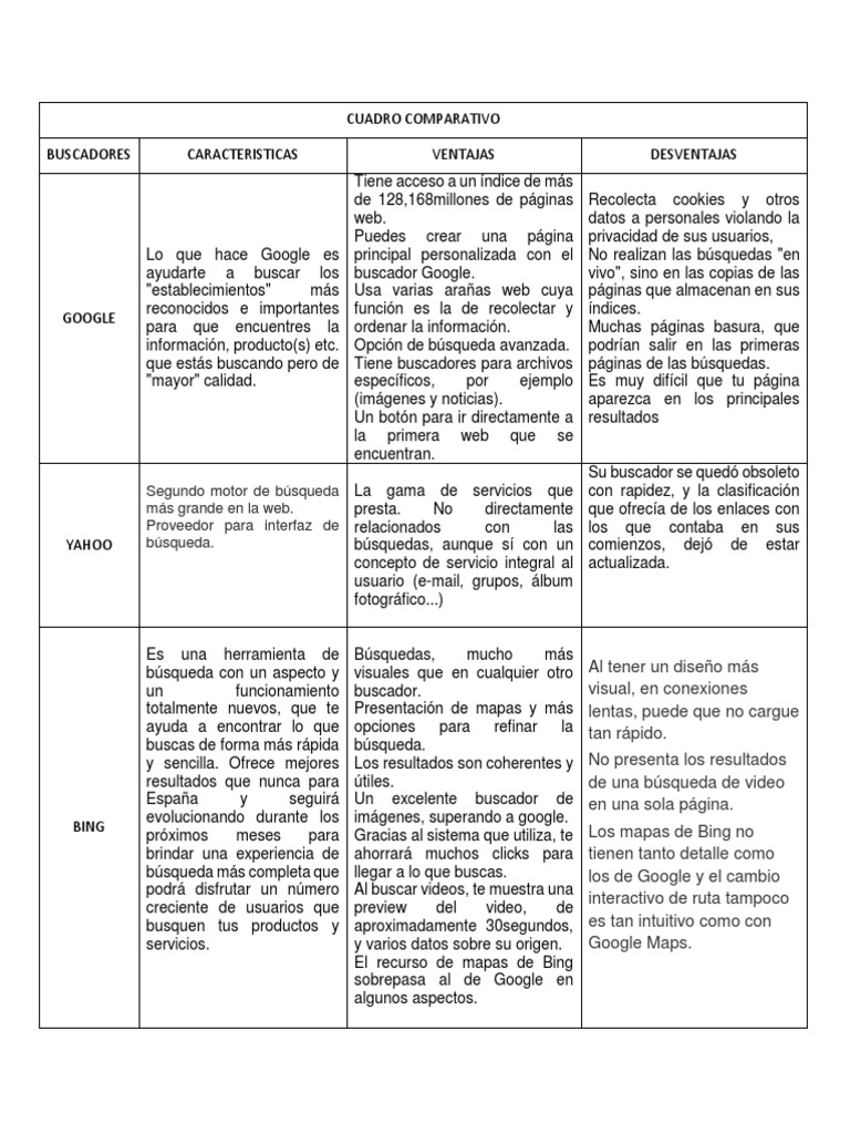 BUSCADORES CARACTERISTICAS VENTAJAS DESVENTAJAS
