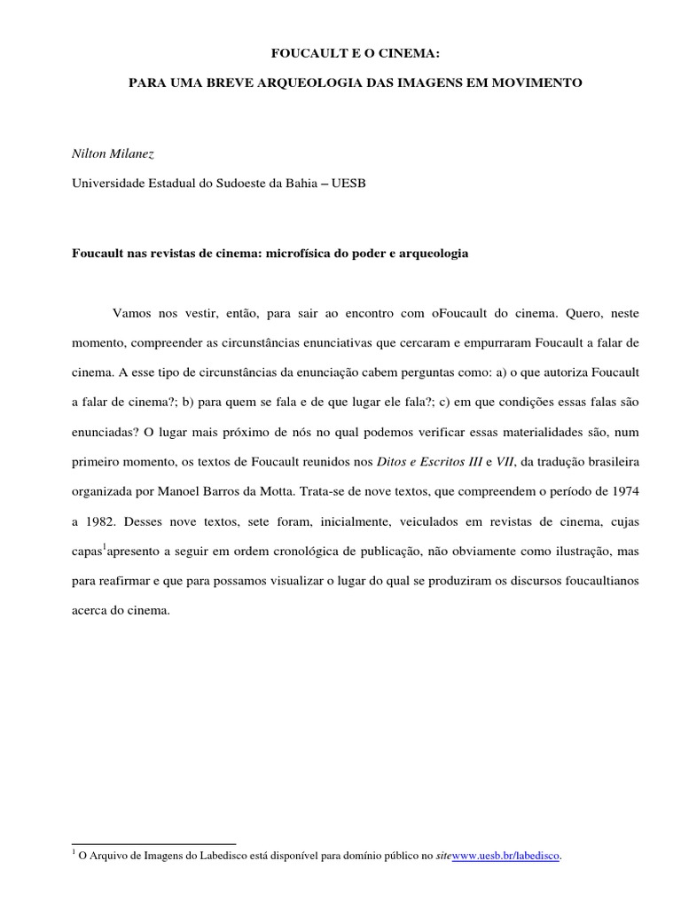 estudiosos de cinema a querer ouvir Foucault sobre o tema? preciso que entendamos que os