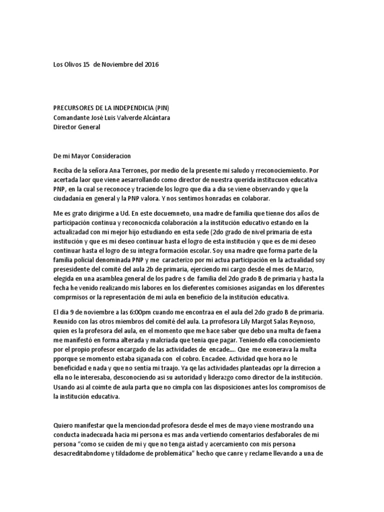 Me es grato dirigirme a Ud. En este docuemneto, una madre de familia que tienne dos aos de