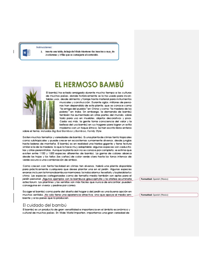 1. Inserta una tabla, debajo del ttulo Mantener los insectos a raya, de