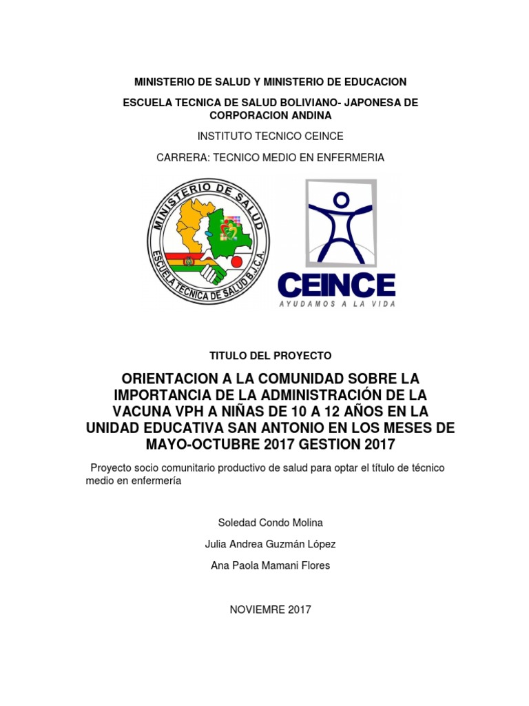 Proyecto socio comunitario productivo de salud para optar el ttulo de tcnico