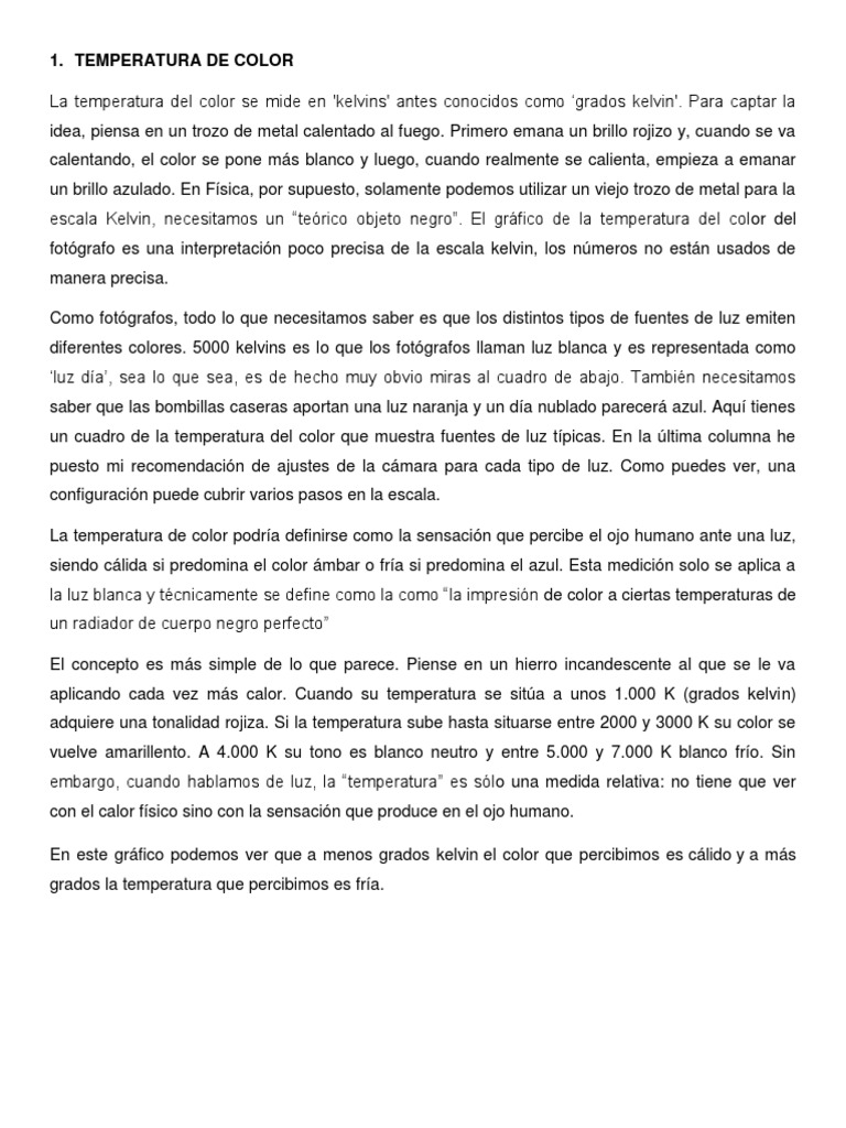 3. TEMPERATURA DE COLOR DE LAS FUENTES DE LUZ: ARTIFICIAL, NATURAL.