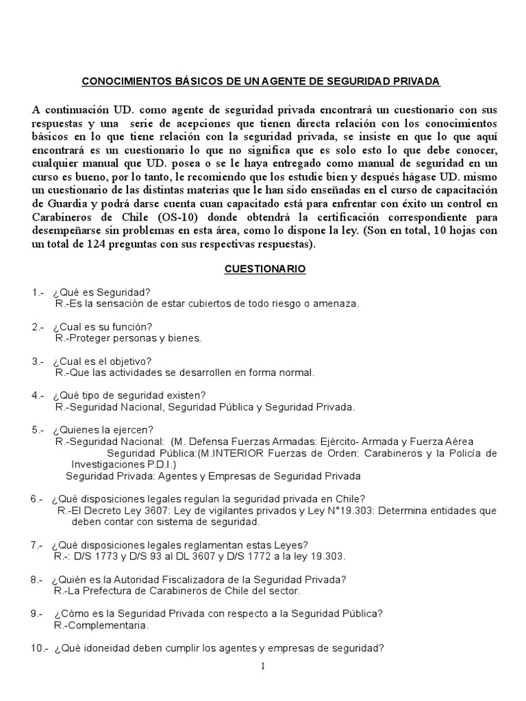 A continuacin UD. como agente de seguridad privada encontrar un cuestionario con sus
