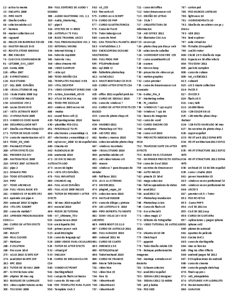 217 - TODO ARCHICAD 484 - FULL ACAD ESPAOL 673 - MIXERS2011 764 - full recuperadores de datos 845 - windows seven profesional 64