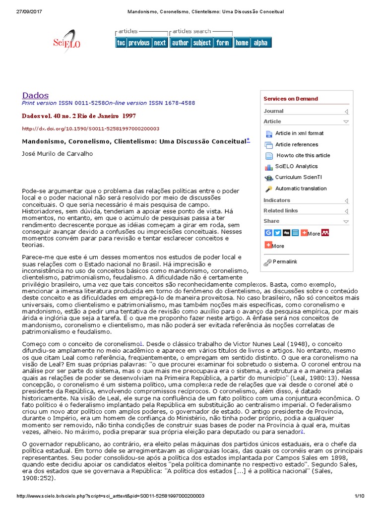 Mandonismo, Coronelismo, Clientelismo: Uma Discussão Conceitual* Article references