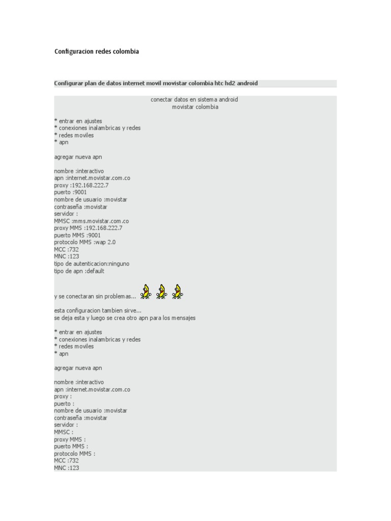 Configurar plan de datos internet movil movistar colombia htc hd2 android
