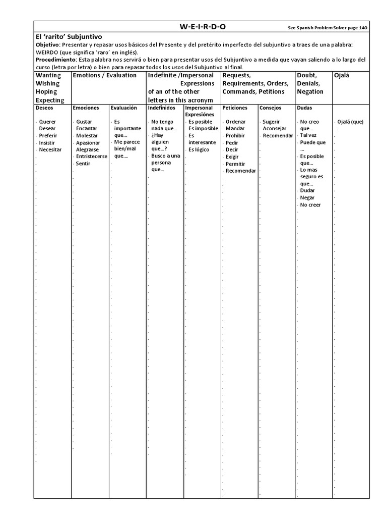 curso (letra por letra) o bien para repasar todos los usos del Subjuntivo al final.