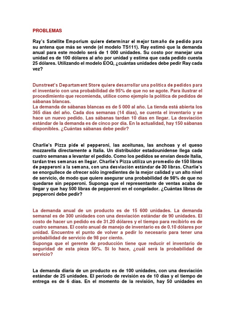 son de 20% del precio de compra. Un pedido tarda en llegar tres semanas. La